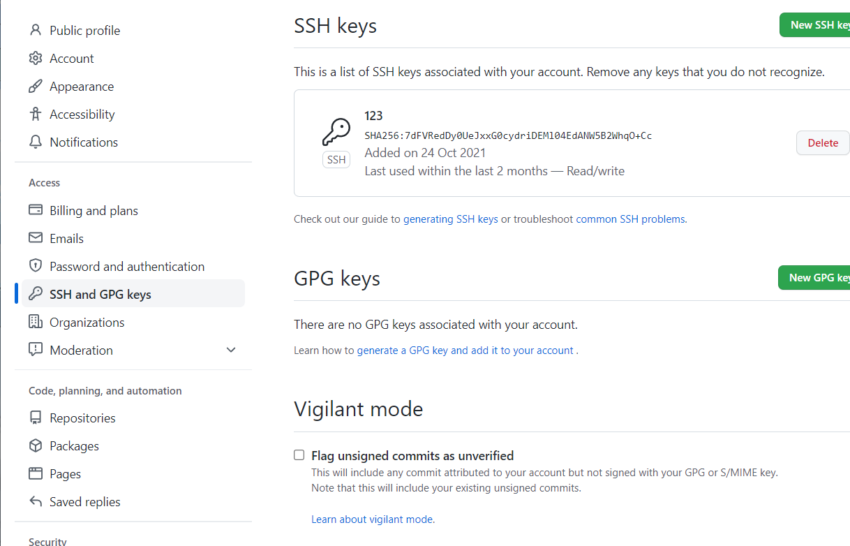 Git和github之间的通信是通过SSH加密的,因此需要执行下面的操作: