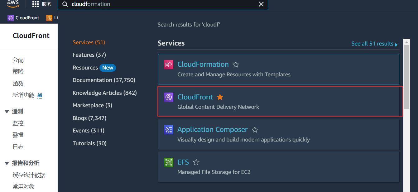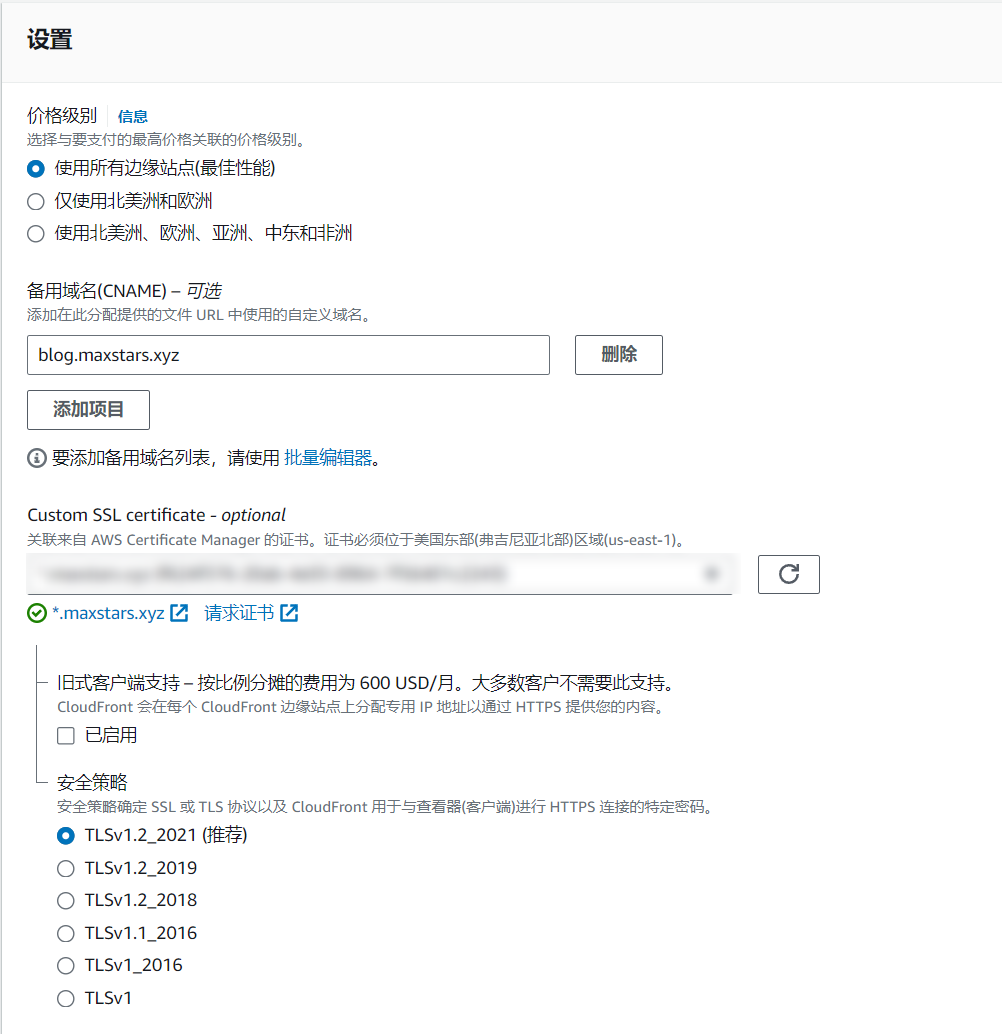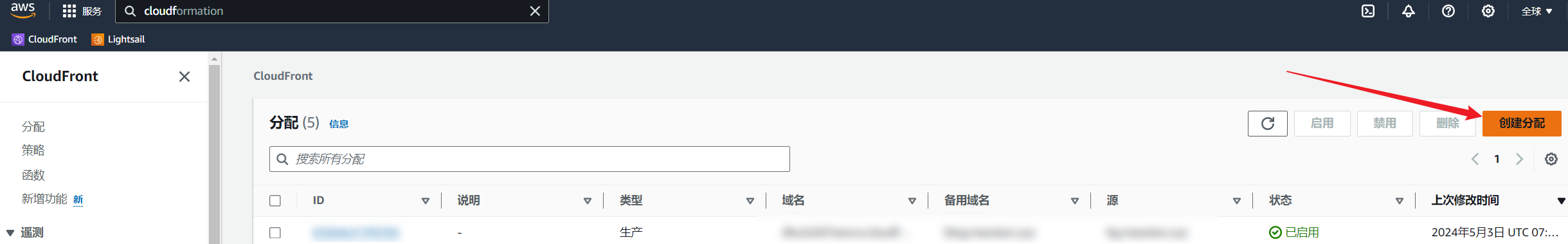 添加完成后返回cloudfront配置,添加一个给读者访问的域名,添加完成后创建分配,等待分配完成即可访问:
