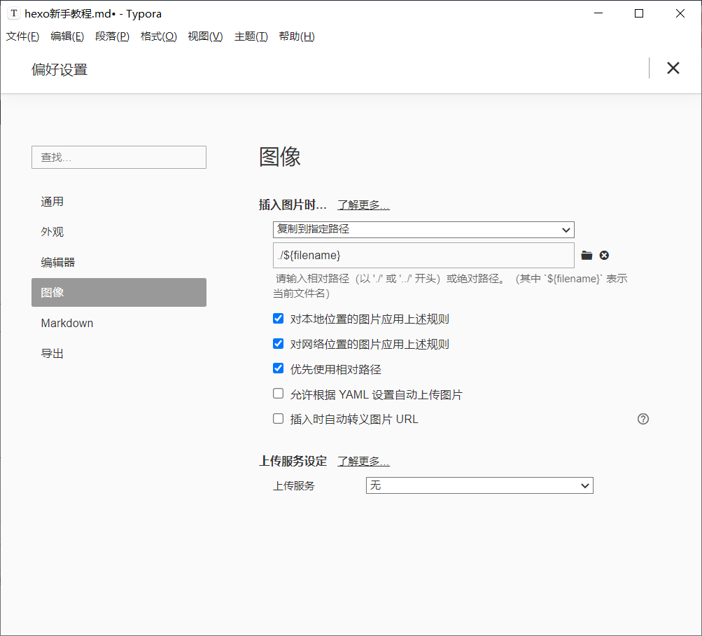 hexo new post 文章名字的时候在你的source->_posts里生成一个和你文章名字相同的文件夹。你可以把相关的文件放进里面以便博客下载或者查阅在typora里写入文章相对路径(关键):