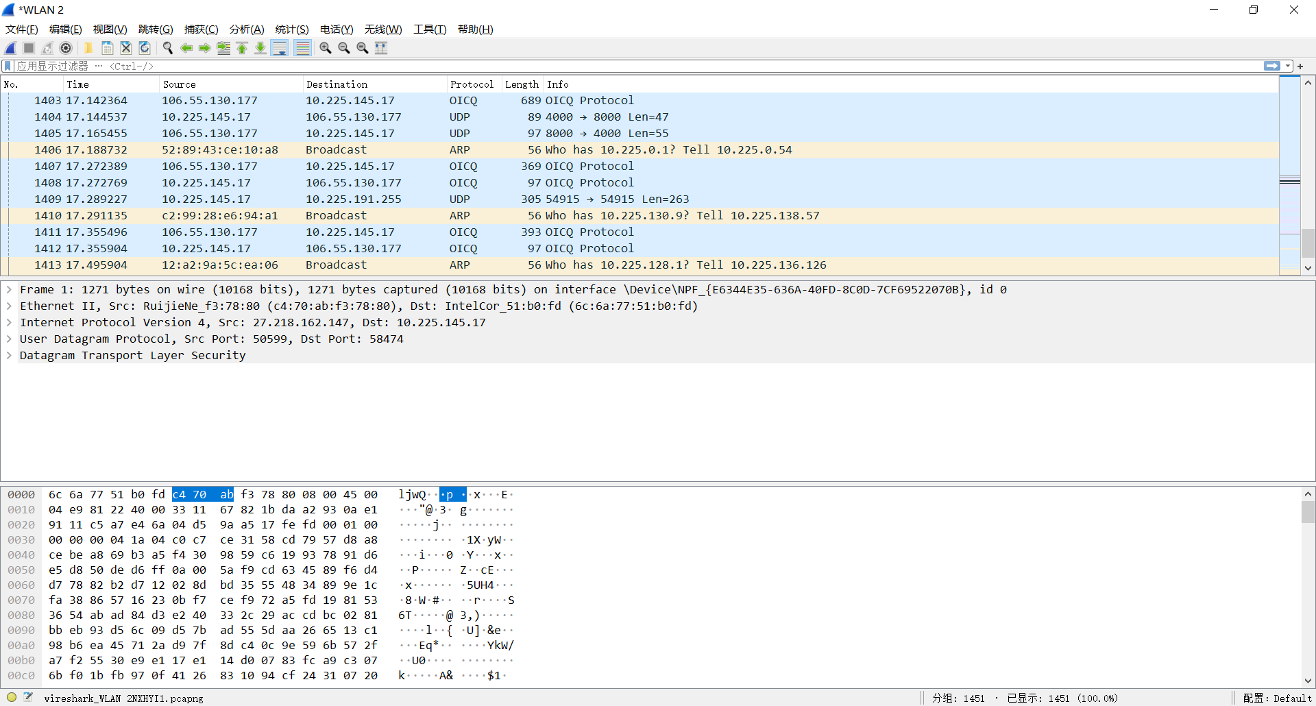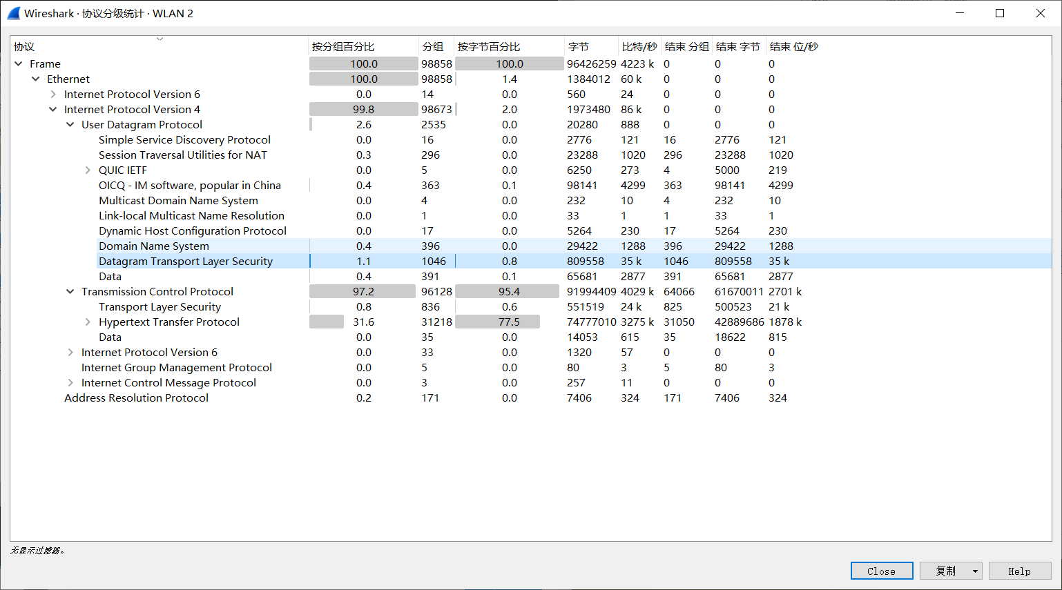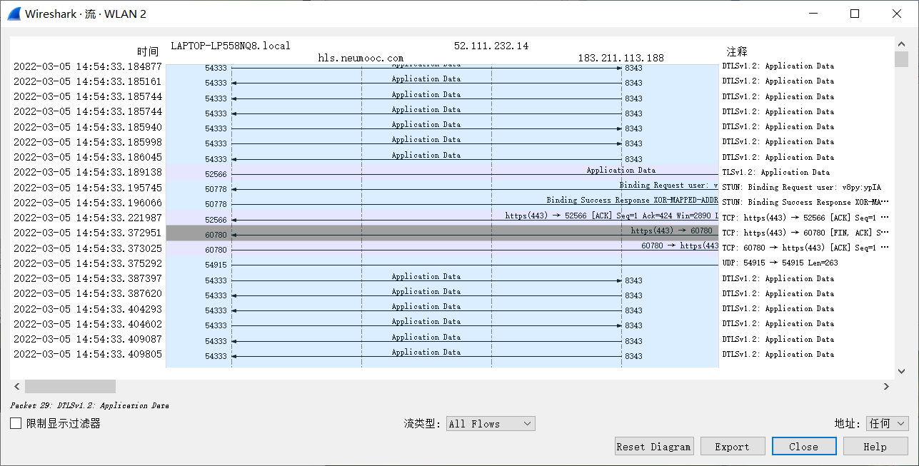 同理,右键UDP协议包选择追踪UDP流,SSL协议则追踪SSL流
