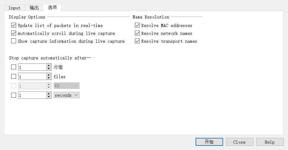 - 可在Name Resolution里开启IP解析(resolve network(IP) addresses)和名称解析(resolve network names)