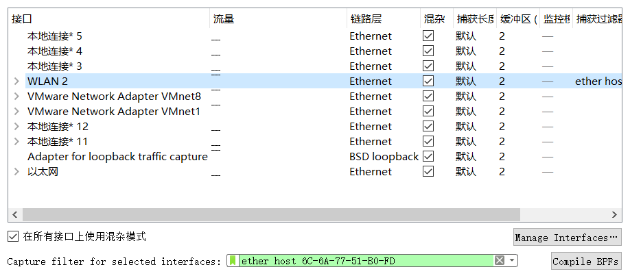 本机环境:通过wireshark直接抓取本机网卡进出流量