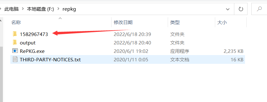 F:\repkg\RePKG.exe extract #这里写repkg的绝对路径
