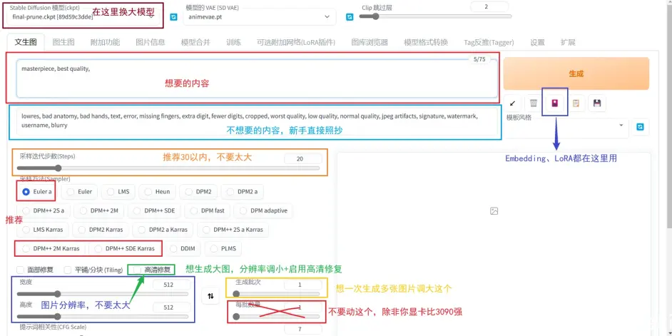 本教程仅适用于生成二次元画风和角色,对于生成真人照片和其他画风请自行摸索