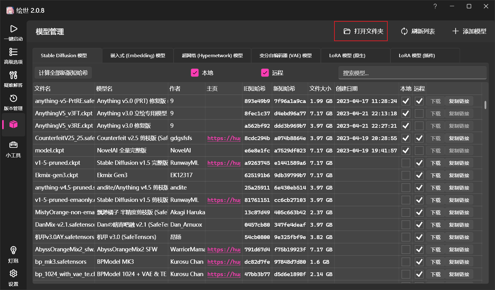 在SD中,大模型应该放在models\Stable-diffusion中,你可以从绘世的模型管理中打开: