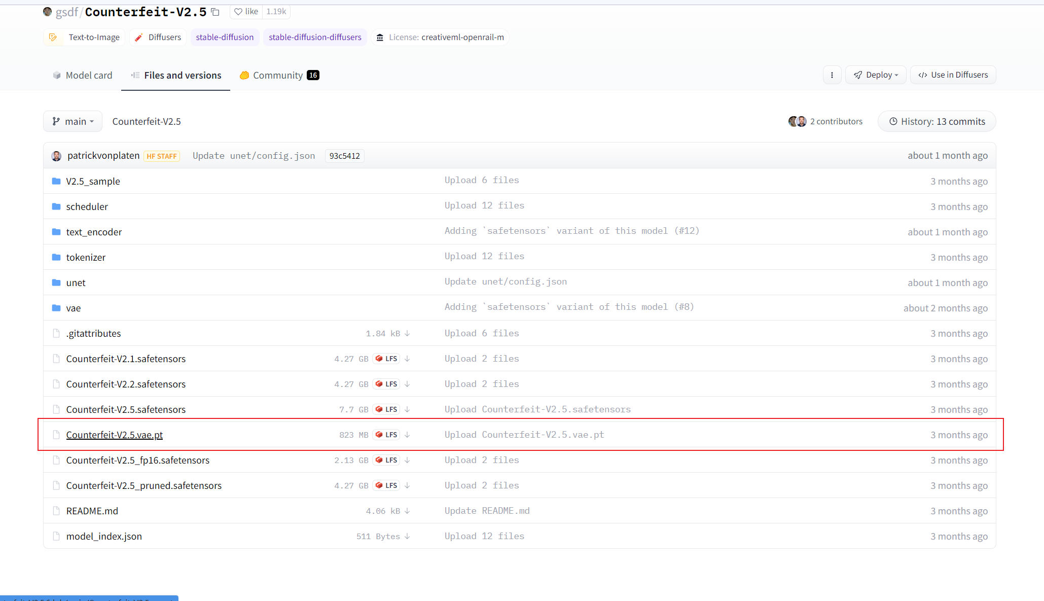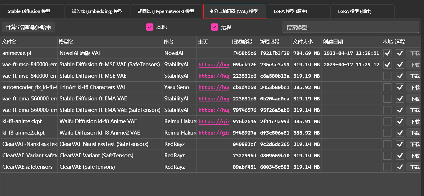 注意:有些模型有附加的VAE,但是C站不提供VAE标签,所以你最好去翻一下。例如Counterfeit-v2.5的模型库里自带一个vae,但是这个就是animevae改了名