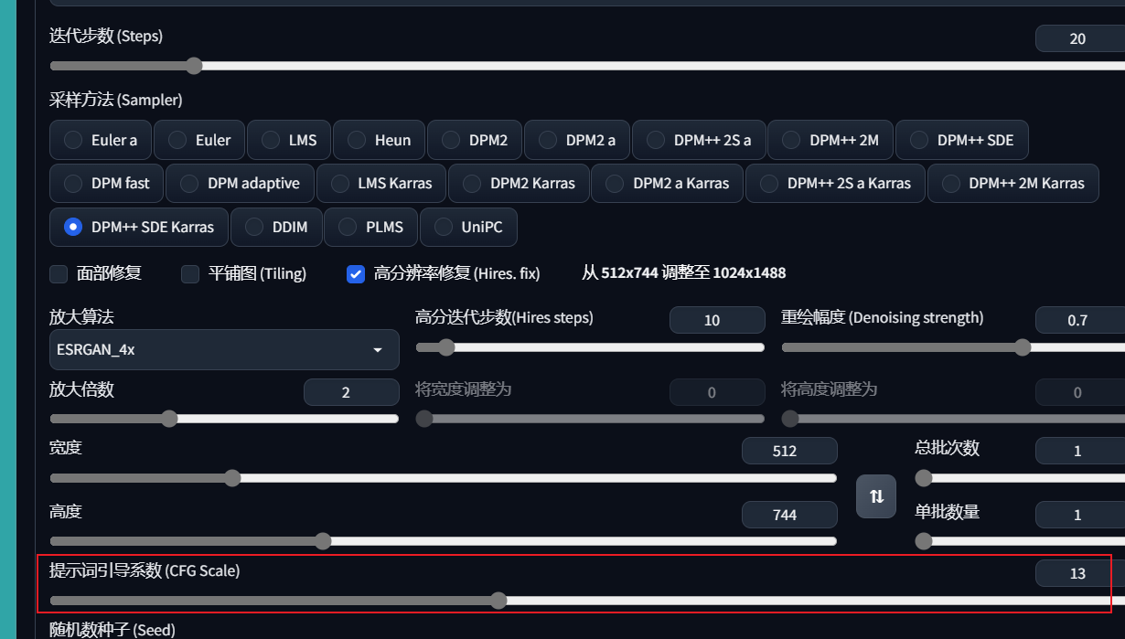 推荐设置:设置为10-20左右即可,一般不超过采样步数