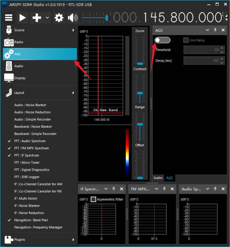 RTL AGC(RTL自动增益):启用RTL2832U芯片上的自动增益控制。这通常是没有用的,因为选择这通常会降低接收。
