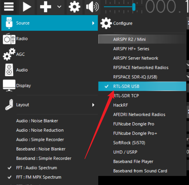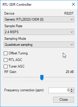 device(驱动):如果您有多个RTL-SDR接收器插入,设备下拉菜单允许您在它们之间进行选择。