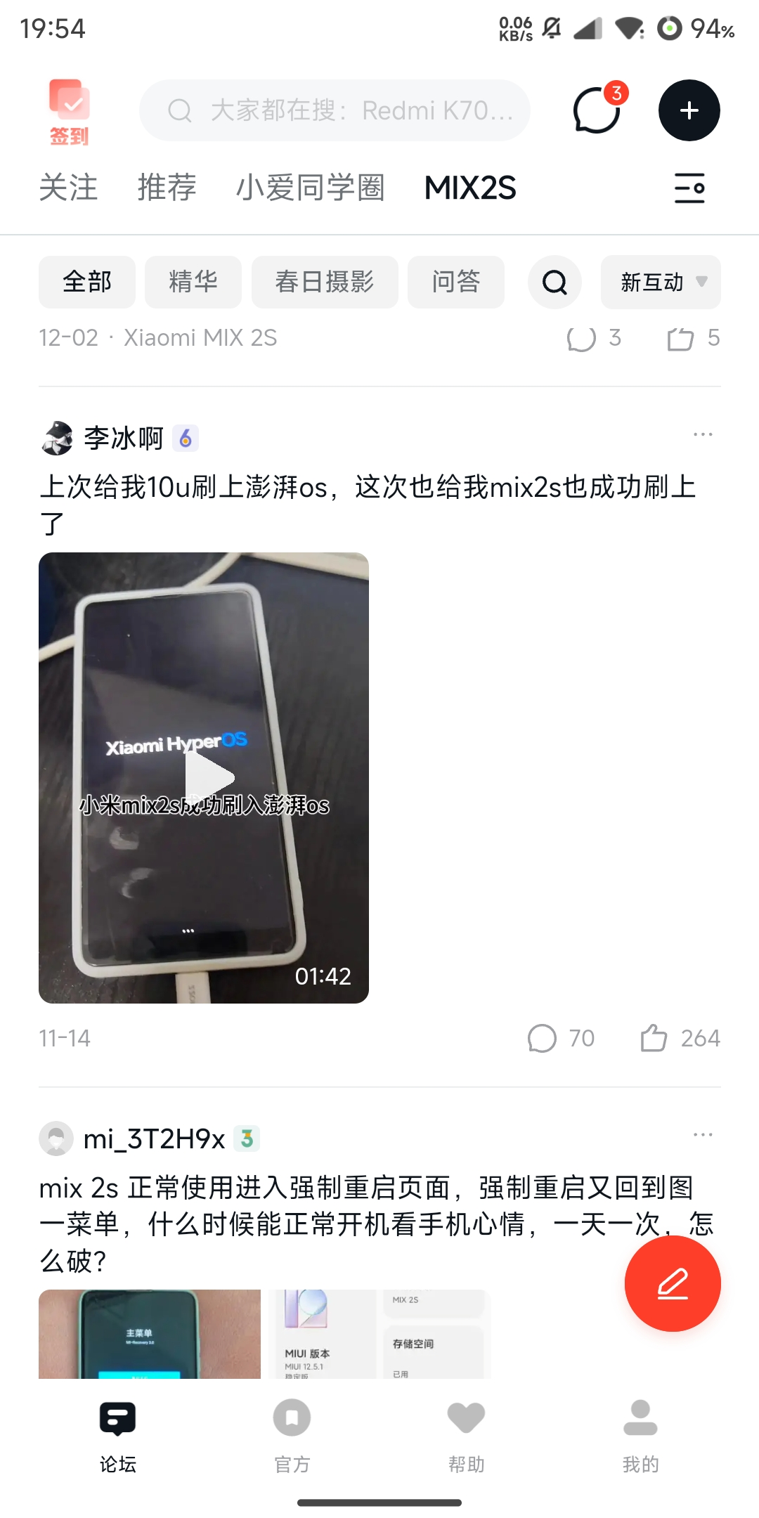 简介:最近闲来无事,在阅读小米的《一往无前》。看到小米那么多的传奇故事,热血沸腾,也让我对小米的理解更深入了。一个机缘巧合,在我读到雷军在小米论坛的名字是”小虾米”时,我就把小米社区下载了回来,想找一下雷军到底发过什么帖子。然而我并没有找到那个当初那个属于他的账号,却碰巧看到了有人在MIX2S上刷澎湃OS的帖子。