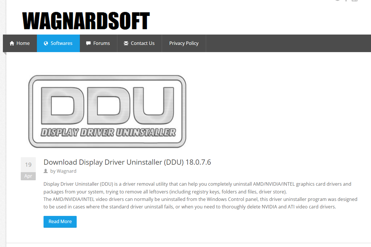 官网下载:https://www.wagnardsoft.com/display-driver-uninstaller-DDU-