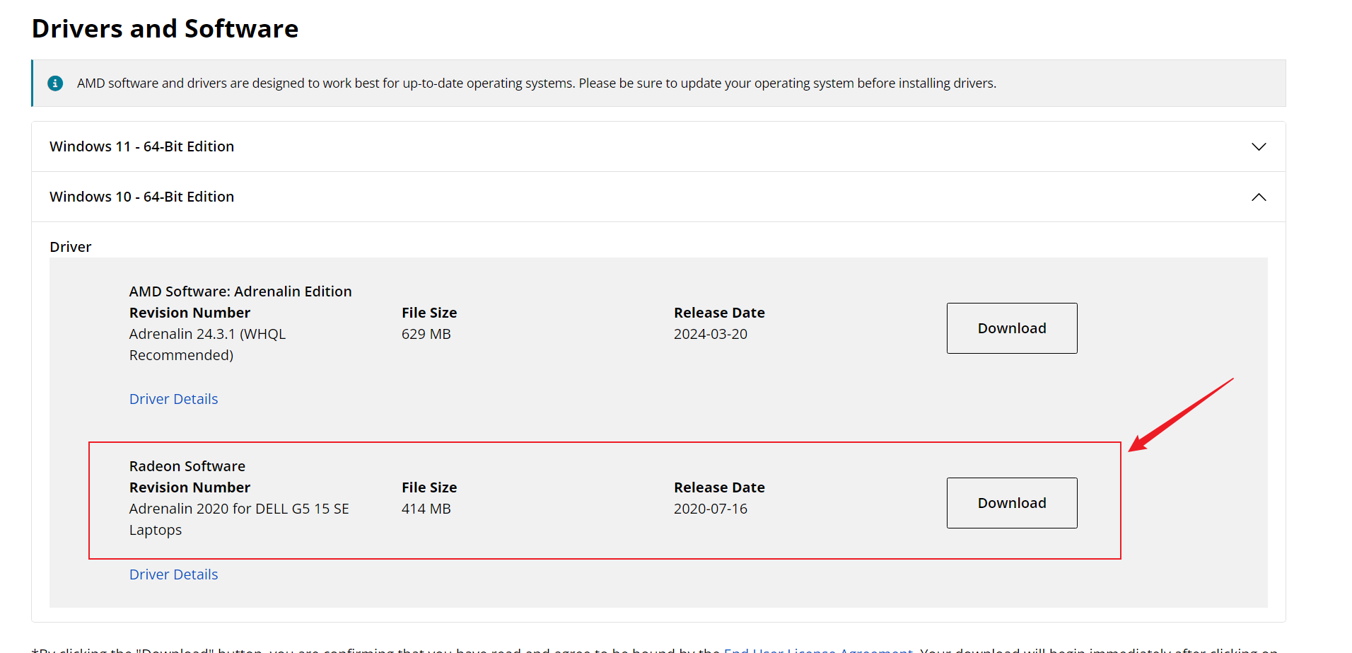 AMD驱动官网:https://www.amd.com/en/support/download/drivers.html