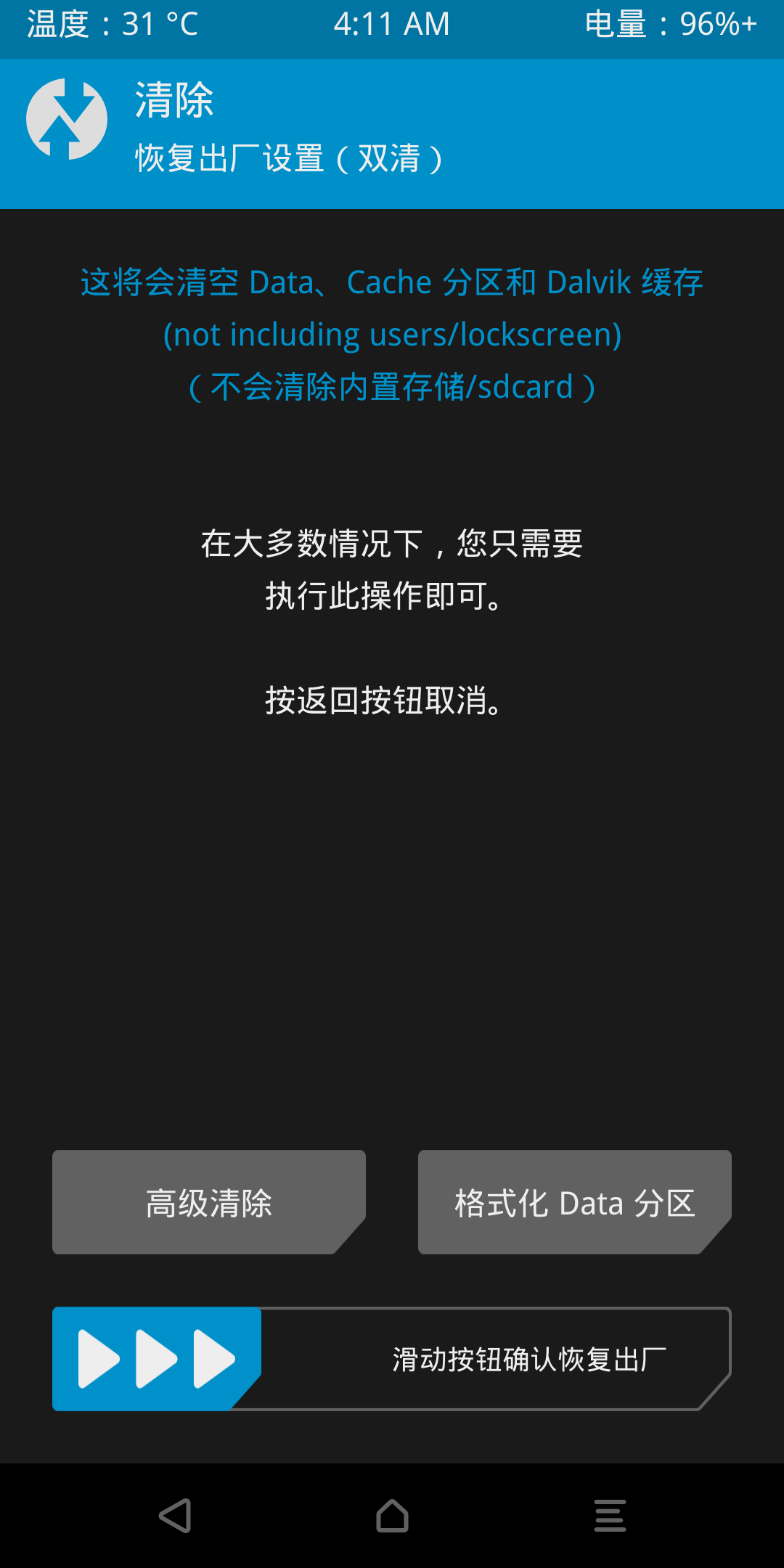 简介:为了刷入澎湃OS你需要先双清,双清直接进入清除选项: