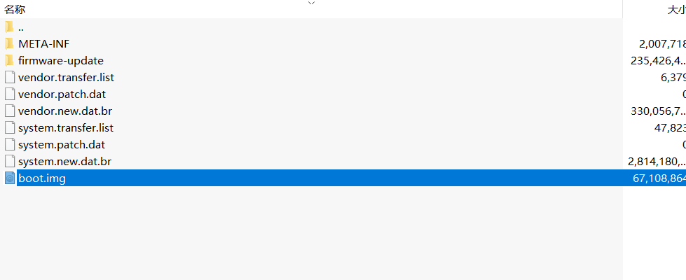 将我们安卓的boot.img放入文件夹,替换掉原本的boot.img。安卓的boot.img文件可以在刷机包内找到: