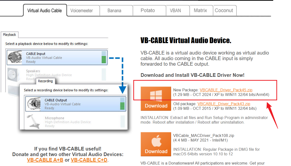 注意:这里的VB-CABLE已经更新了Arm64版,你需要使用最新的Pack45版本